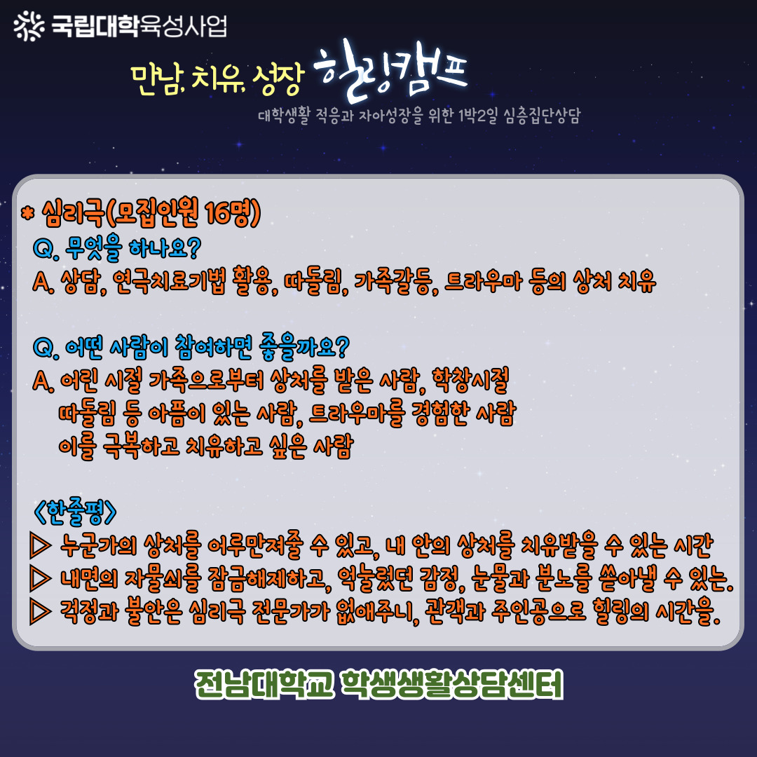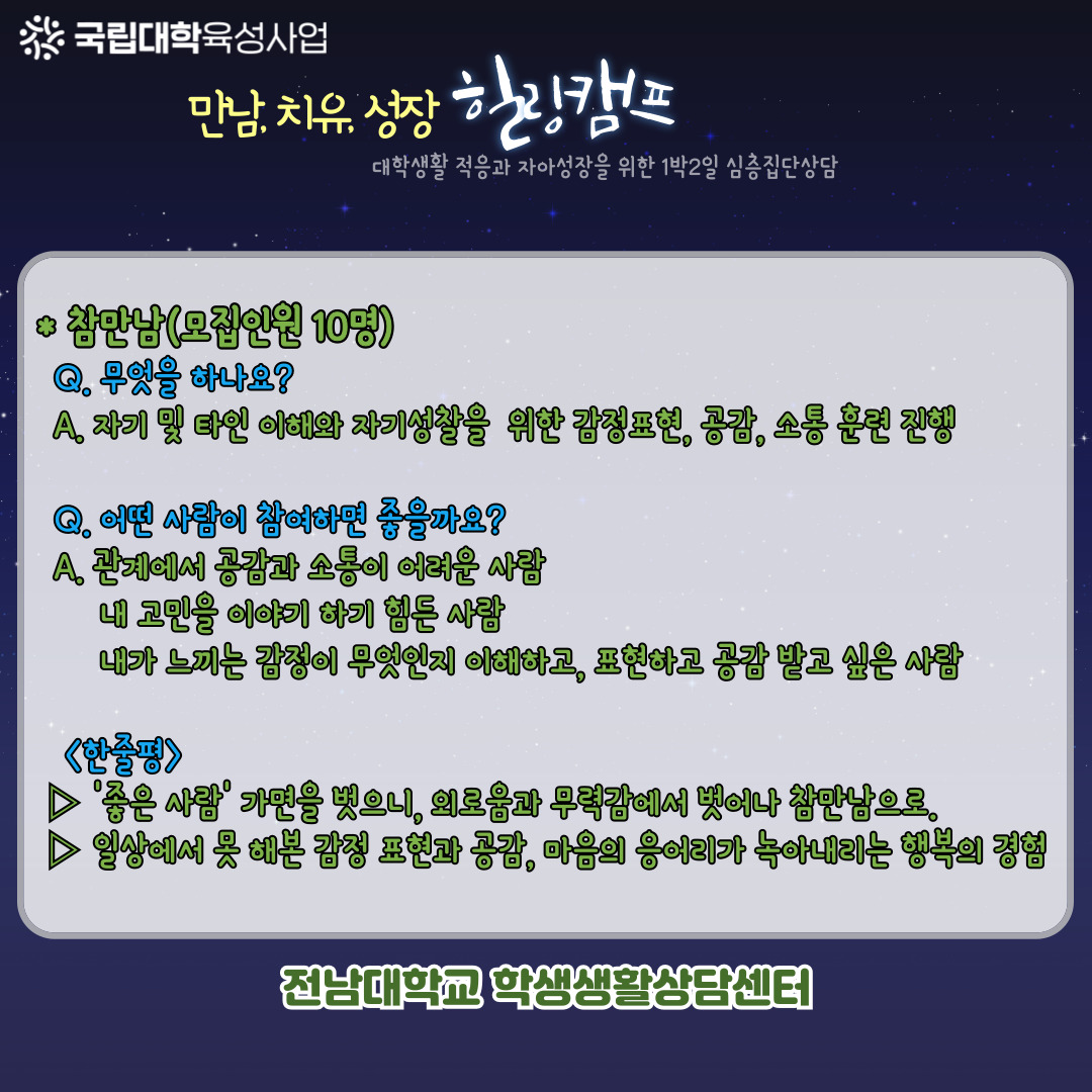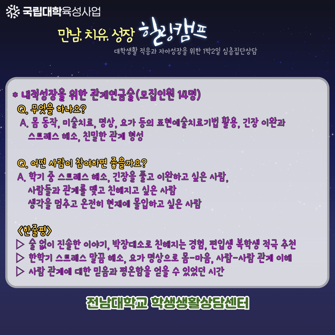 2025학년도 심층집단상담 힐링캠프 [만남, 치유, 성장] 안내
