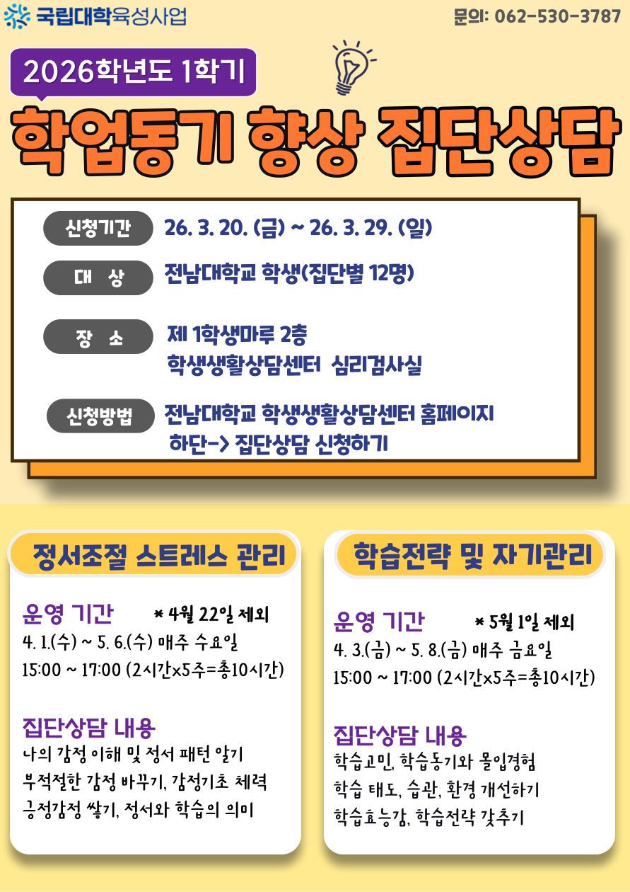 2026학년도 1학기 학업동기향상 집단상담 프로그램 모집 안내