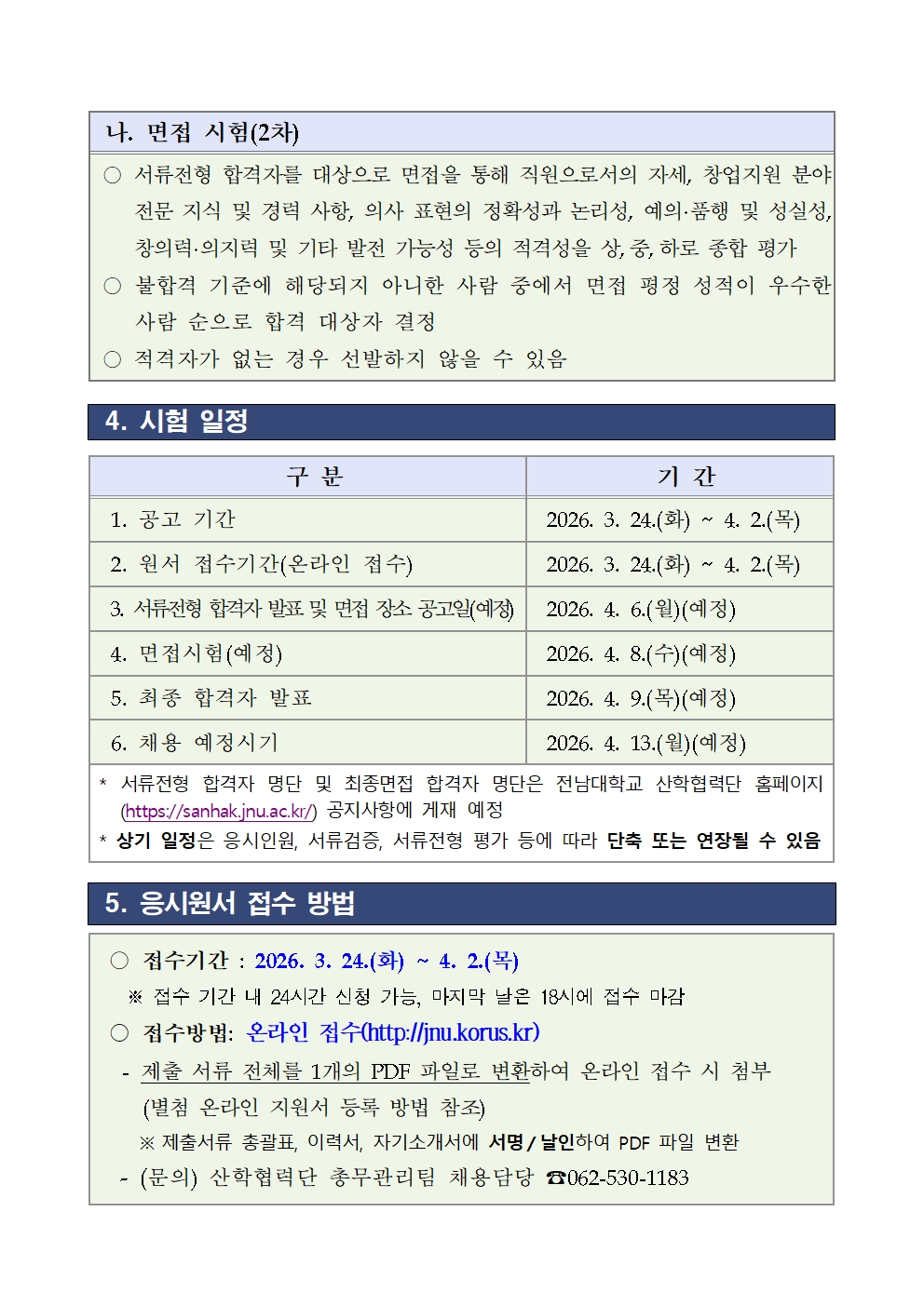 2026년 제2회 전남대학교 창업중심대학사업 전담직원 채용 공고